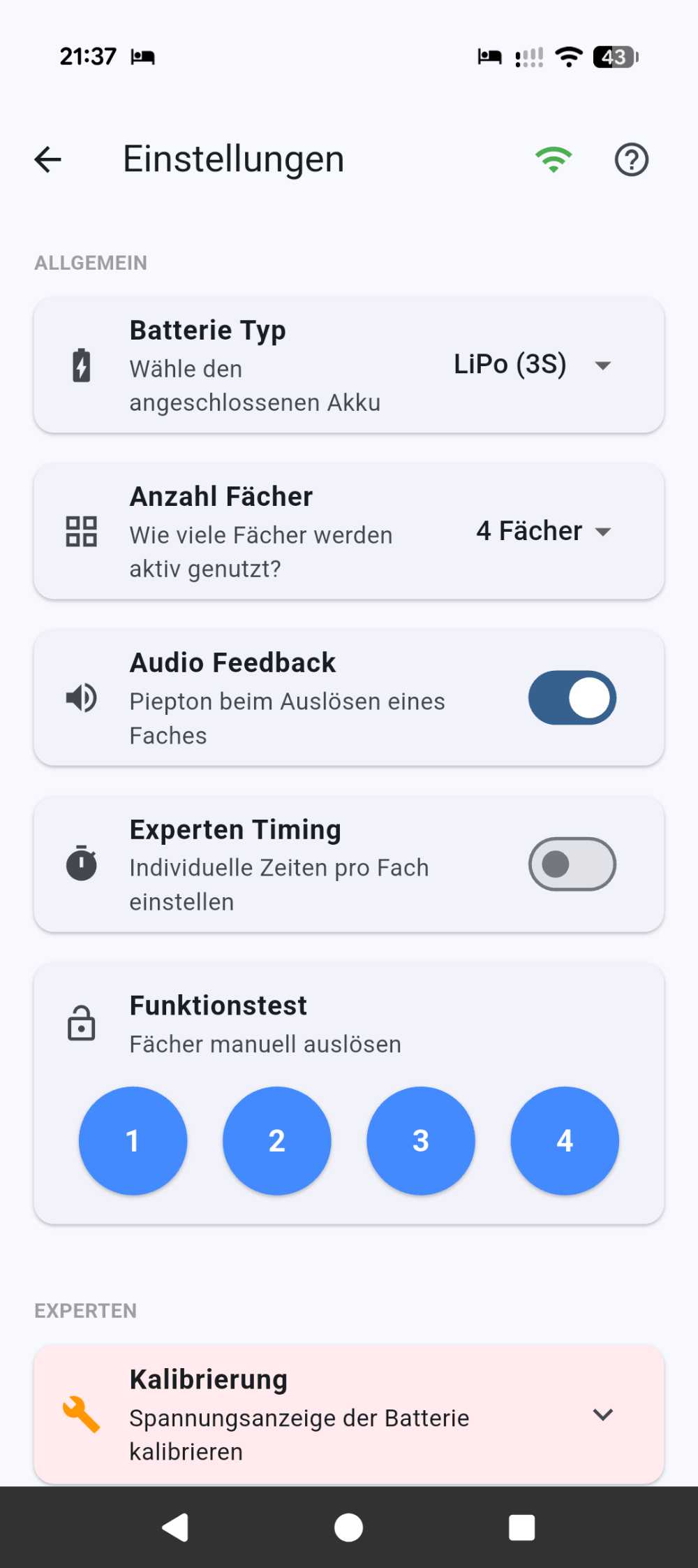 - Die vier Schaltausgänge können ebenfalls über die App manuell einzeln getestet werden